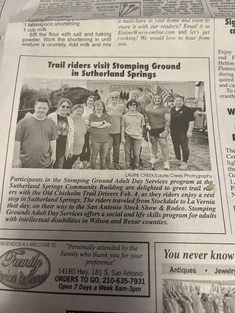 At Stomping Ground Adult Day Services (our first venture), we empower individuals with intellectual and developmental disabilities (IDD) to lead more meaningful, self-determined lives within their communities. Our unique day program serves participants primarily from Wilson County, but welcomes those with IDD from Karnes, Guadalupe, Atascosa and southern Bexar County, Texas—just 30 minutes from San Antonio and the surrounding counties—in the peaceful setting of rural Wilson County.